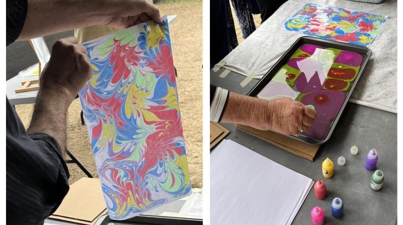 No prior experience is required, just a willingness to explore and create. All materials will be supplied. Paper marbling is a method of aqueous surface design, which can produce patterns similar to smooth marble or other kinds of stone. Marbled paper (Abri) was once called "papers from the sky" during the Ottoman, Safavid, and Mughal rule. Traditionally made by hand, it was most commonly used as a writing surface for calligraphy but also used for book covers and endpapers in bookbinding and stationery. Each print is a unique monotype.