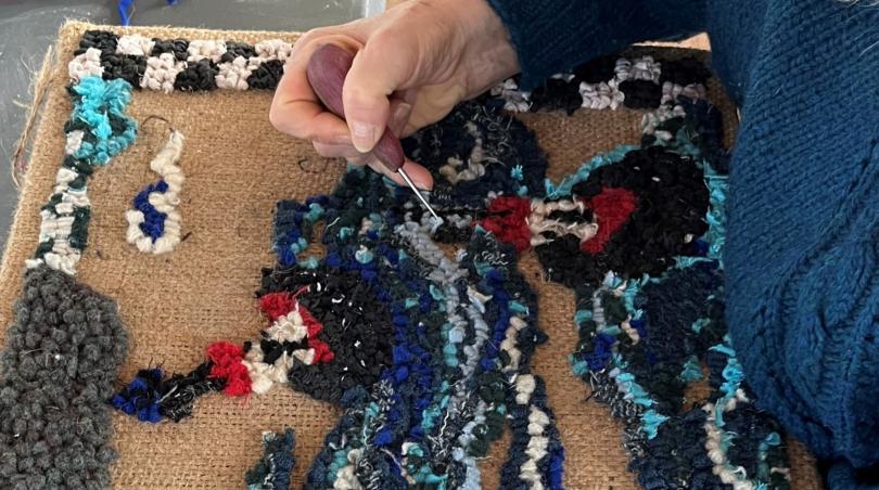 First workshop: An introduction to materials and rug hooking techniques focusing on designing and making a small practice piece based on traditional imagery or designs. Explore working with used clothing as our principal media. Practice the main technique of hooking, trying out different tools and materials.